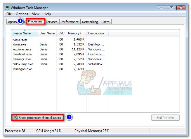 - Open Task Manager (Ctrl + Shift + Esc), go to the Processes tab and click on Show processes from all users.