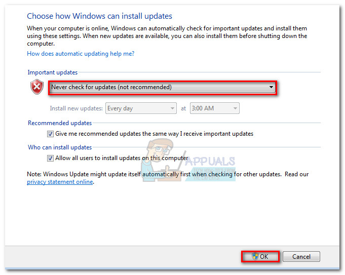 Users encountering the “Windows Update Standalone Installer stuck at searching for updates” issue reported that the search through the Windows Update Standalone Installer takes a lot of time (several hours) or gets stuck indefinitely. Another symptom of this issue is the Svchost.exe process having consistently high CPU & RAM usage. The appearance of this issue can be dated back to the 2nd quarter of 2016 and is confirmed to appear on Windows Vista, Windows 7 And Windows 8. This behavior is typically encountered after a clean OS installation or after an upgrade from an older Windows version. Up until now, Microsoft hasn’t provided a “works-for-all” solution that would aid end-users in encountering this problem.
