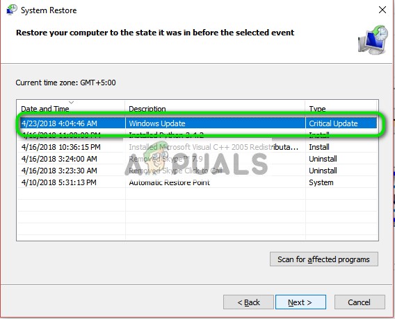 - Now select the restore point where the Windows Update was installed on your computer. If you have more than one restore points available, choose the latest restore point and check the functionality there. If it doesn’t work, you can move on to the next.