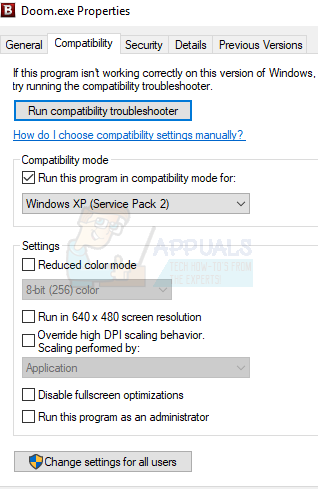 - Select the Compatibility tab, and under “Compatibility mode”, check mark “Run this program in compatibility mode for:”