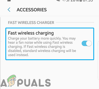 Tapping on “Advanced Features” and then on “Accessories” - Under the Fast Wireless Charger heading, turn the “Fast Wireless Charging” option “ON“.