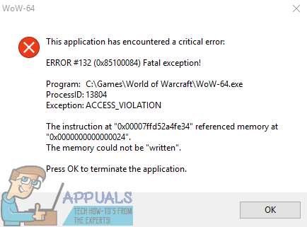 The error message associated with error 132 shows up after World of Warcraft spontaneously crashes and basically states that the game crashed because of a critical error involving a fatal exception. There are over half a dozen possible causes of error 132 – these span from out of date addons and corrupted files to incompatible or outdated drivers and relatively more serious hardware issues. If you have fallen prey to error 132 while playing World of Warcraft, however, the following are some of the most effective solutions that you can use to get rid of error 132 and get back online: