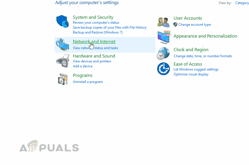 - Once in the control panel, click on the sub-heading “Network and Internet”.