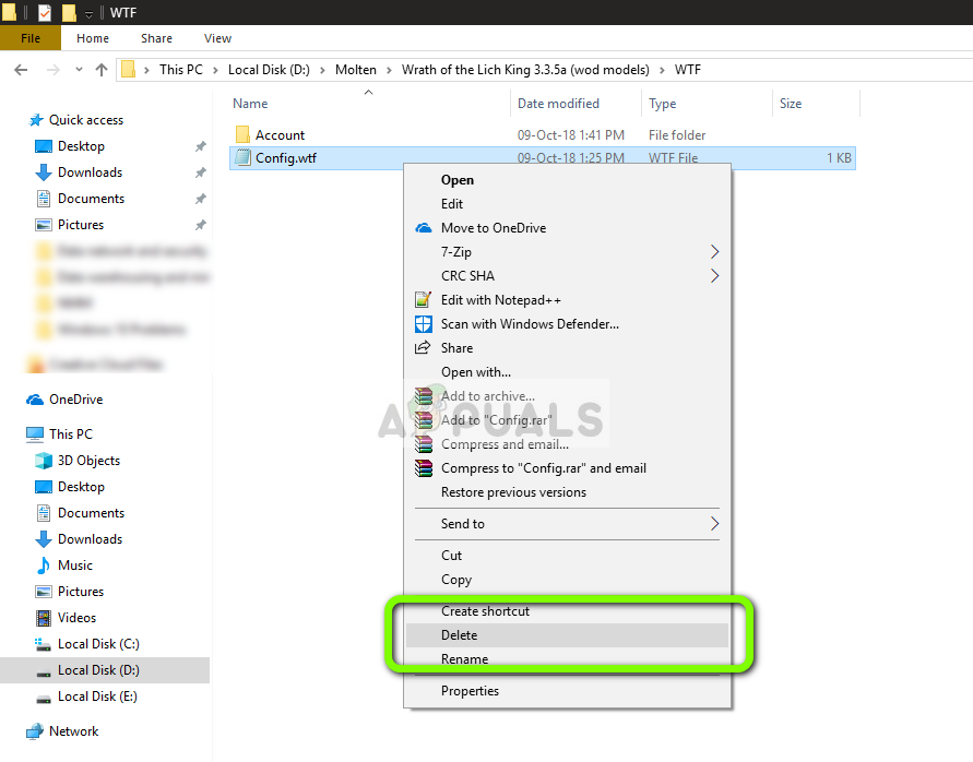 - Delete the .wtf file and restart your computer completely. Now check if the issue is resolved.