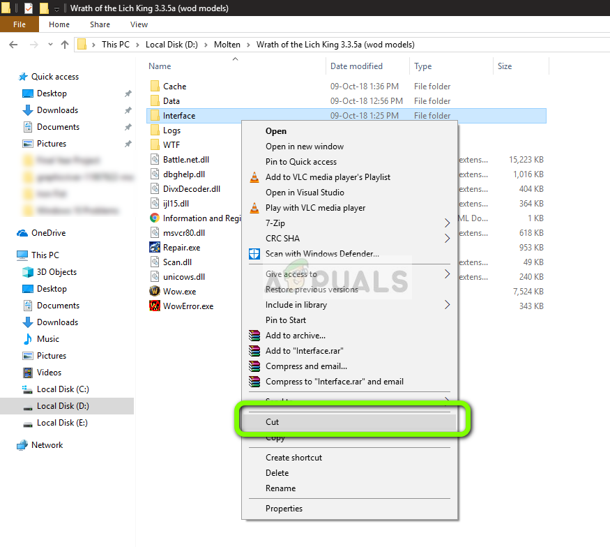 The Interface folder is the default folder which contains all the add-on files and screenshots etc. in your World of Warcraft installation. There are cases where this folder becomes corrupt and gets unreadable by the game client. The interface folder doesn’t contain any important game mechanics and can be easily recreated by the game.