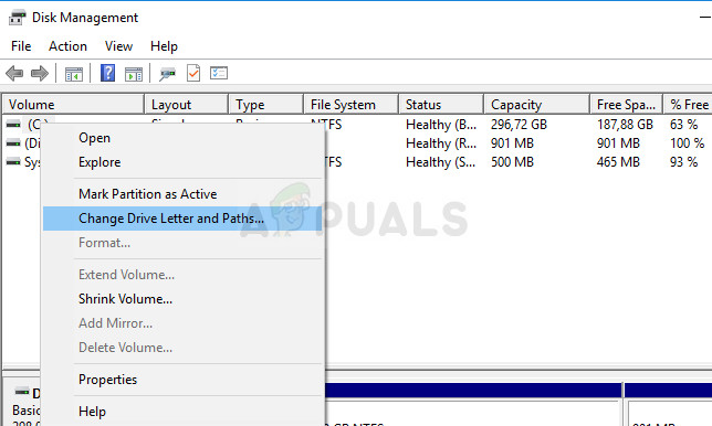 - Right-click the volume with the drive letter you want to change and choose the Change Drive Letter and Paths option. After that, click on change and choose from a list of available drive letters.