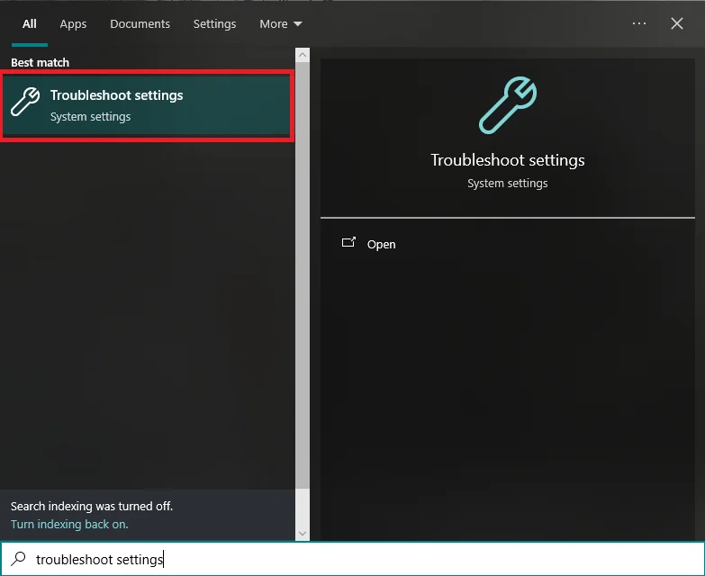 - Press the Windows Key, type Troubleshoot, and press Enter.