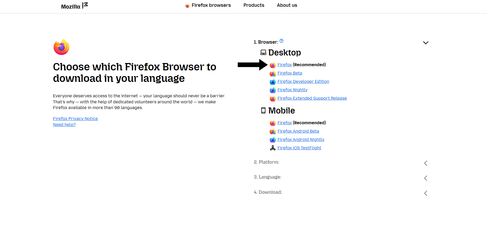 - Visit the official Mozilla download page: https://www.mozilla.org/en-US/firefox/all/#product-desktop-release