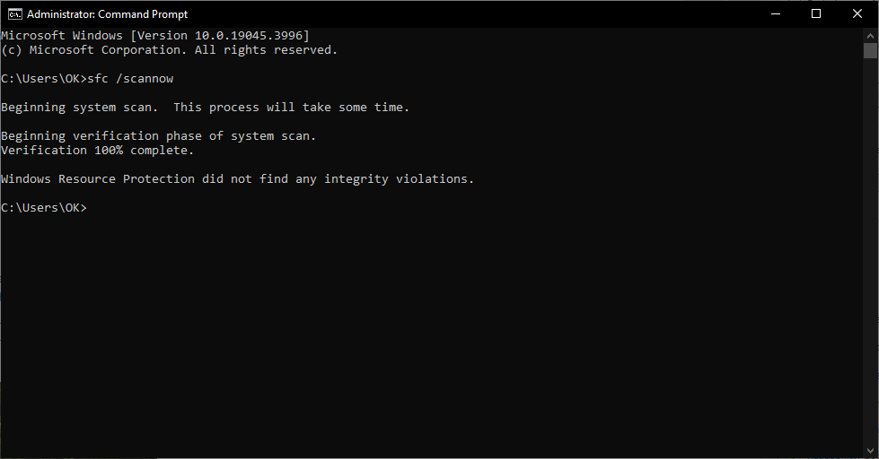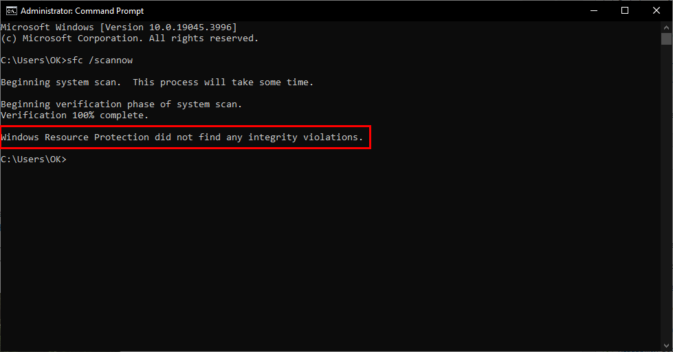 - Windows Resource Protection did not find any integrity violations: No protected system files are corrupted.