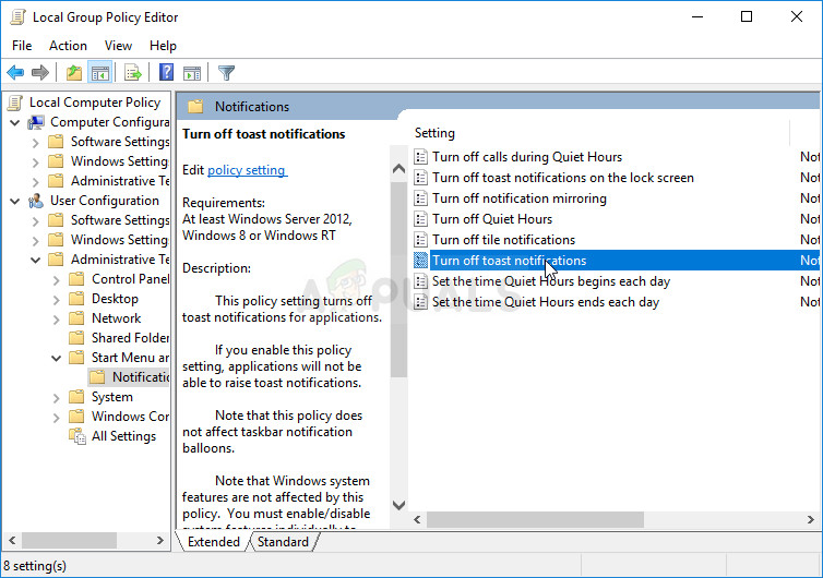 Solution 4: Disable Toast Notifications via Group Policy