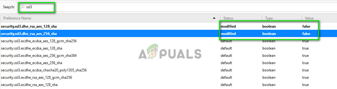 - Now when the search bar appears at the top of the window, type “ssl3” in the dialogue box and now wait for the results to be populated.