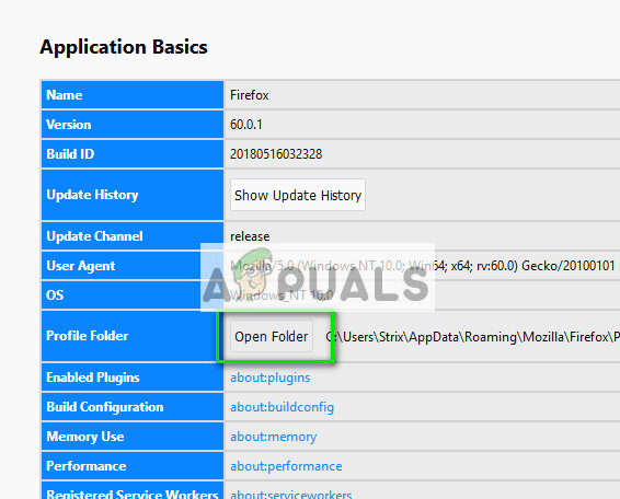 Open Troubleshooting Information - Now under the heading “Application Basics”, click “Open folder” in front of Profile Folder.