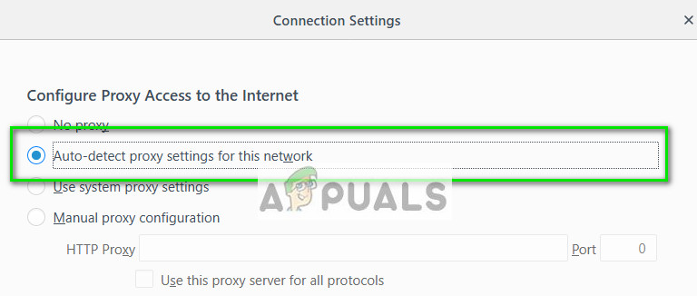 Open Network Proxy Settings - Now select the option “Auto-detect proxy settings for this network”. Save changes and exit.