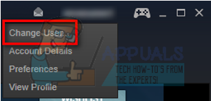 - Log out of Steam by clicking on the option of “Change User” present if you click your account title on the top right corner of the Steam client.