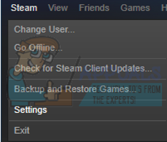 - Now navigate to your Settings by pressing the Settings option after clicking Steam present in the bottom left corner of the screen. Once in the Settings, open the Downloads tab present at the left side of the interface.