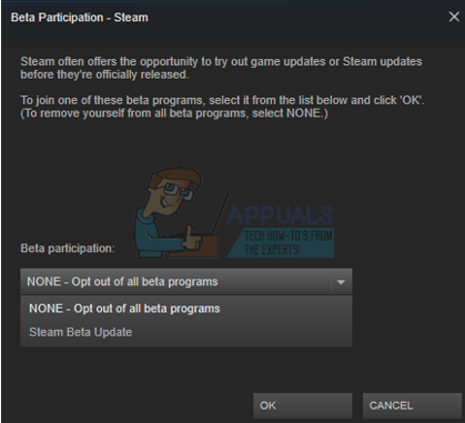 - Select the option which says “NONE- Opt out of all beta programs”. Close Steam and open task manager to end all the Steam processes. Restart your computer and open Steam again. If your client was part of a beta program, it will install some updates before you can play your games again.