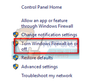 - Now at the left side, click the option which says “Turn Windows Firewall on or off”. Through this, you can turn your firewall off easily.