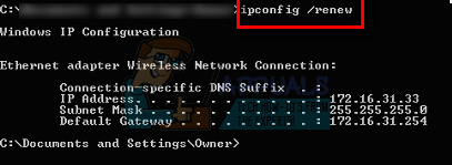 - Once this is done, type “ipconfig /renew”. This command requests a new IP address from the server. If the computer is connected to a DSL modem or a cable, it may have to be connected directly to the modem network to bypass the router before using “ipconfig /release” and turning off the power for a couple of minutes. This ensures that the old IP gets taken by another computer.