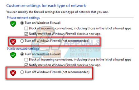 - Select the option of “Turn off Windows Firewall” on both the tabs, Public and Private Networks. Save changes and exit. Restart Steam and launch it using the option Run as administrator.