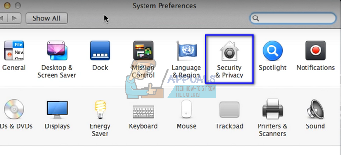 - Once in system preferences, click on the sub-heading “Security and Privacy”.