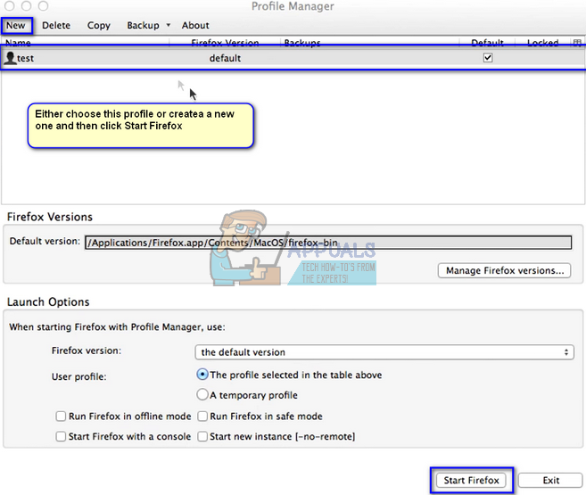 - You can either choose a profile or create a new one. After selecting a profile, click on “Start Firefox”. Hopefully, Firefox will launch without any further problems.