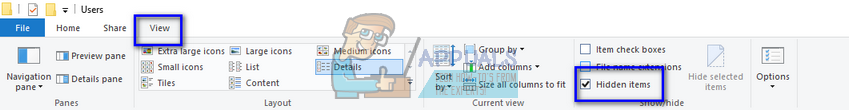 - Restart your computer and press Windows + E to launch the file explorer. Now click on “View” and check the option “hidden items”. This is done so we can easily access all the files even if they are hidden from the conventional user.