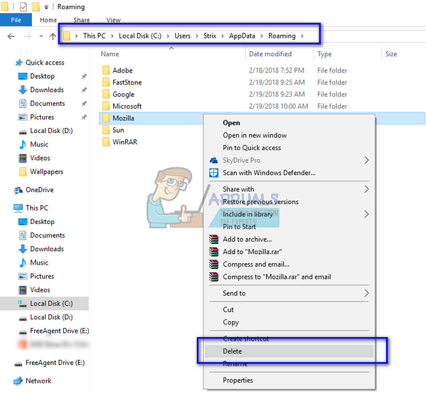 Here <UserName> is the name of the user of the profile where it is installed (it will be your username of Windows). If you find a Mozilla entry, right-click on it and select “Delete”.