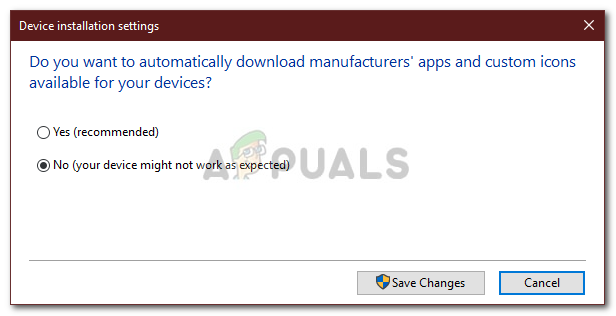 Changing Device Installation Settings - Click ‘Save Changes’.