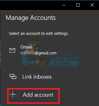 - Add the mail again in a similar manner by clicking on the + sign which appears when you click on Manage accounts and switch back to your regular Microsoft account.