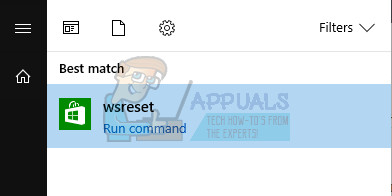 - Click on your Start menu and type the “wsreset” command. As soon as you type this in, the first result at the top should be “wsreset – Run command”.