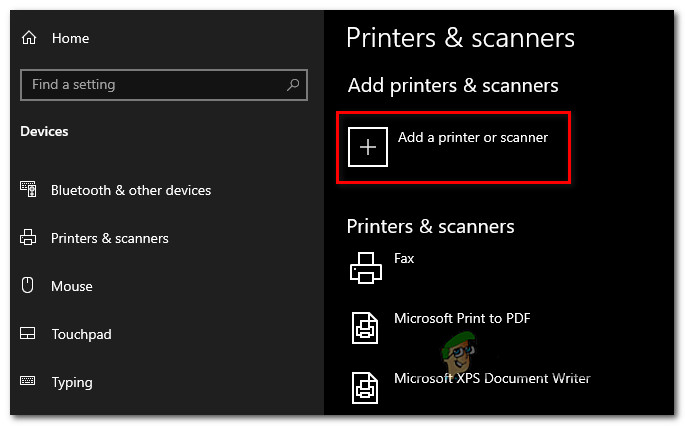 Some affected users have managed to resolve the issue by adding the same printer again inside the Printers & scanners menu. All users that have resulted to this fix have reported that this doesn’t create any sort of conflict – the only minor inconvenience is that you will have your printer listed twice under Printers & scanners.