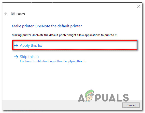 Running the Printer Troubleshooter - Wait until the initial scanning period is complete, then click on Apply this fix if a repair strategy is recommended.