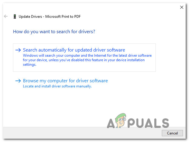 - The printer driver is outdated – Another potential case in which this error occurs is when you’re using a severely outdated driver. Several users finding themselves in a similar situation have reported that they managed to resolve the issue after using Windows Update to update to the latest version or after updating the driver manually.