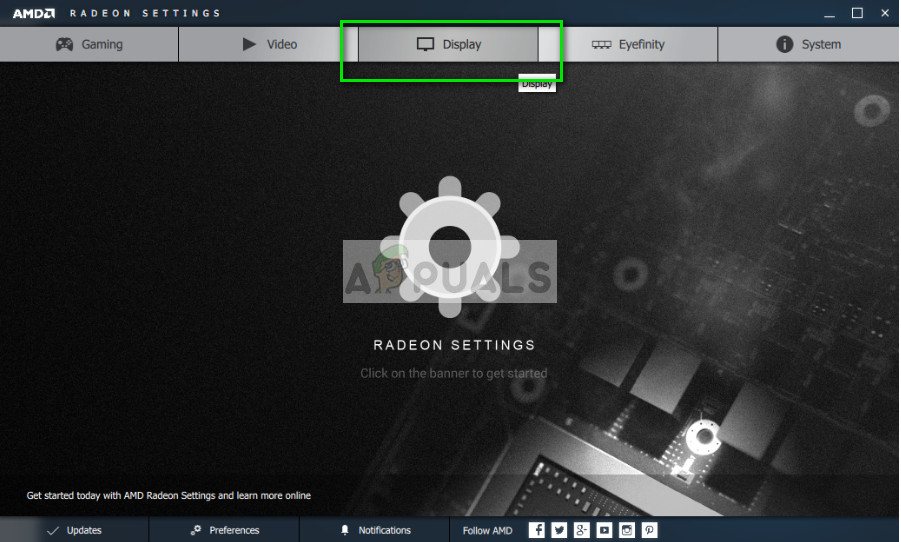 - In AMD Radeon settings, click on the ‘Display’ present at the near top of the screen.