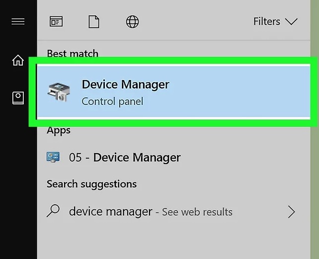 - Press the Windows key, type “Device Manager” and in the search results, click on “Device Manager“.