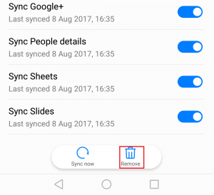 Open Google Account in Android Accounts - Tap the Remove icon and confirm. If you don’t see the icon right away, tap the menu icon (three dots icon) and select Remove account.