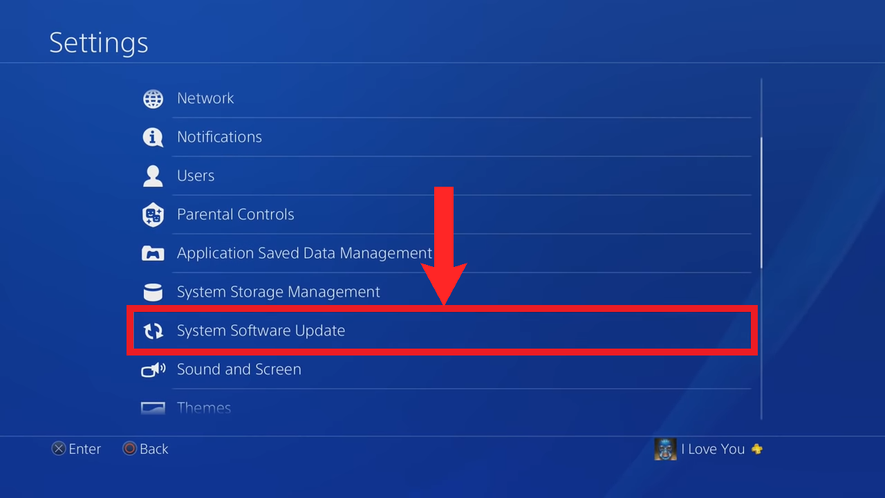 Scroll down and select System Software Update - It will automatically begin checking for updates and also download the update if available. Restart your PS4 afterwards.