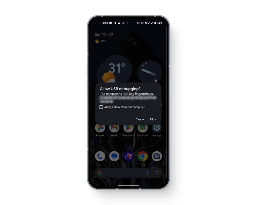 NOTE: When connecting your phone to ADB or your PC for the first time, you may need to manually grant permissions on your device. After connecting the phone, when you enter the “adb devices” command, a pop-up may appear on your phone requesting user authorization. Simply tap “Allow” to proceed.