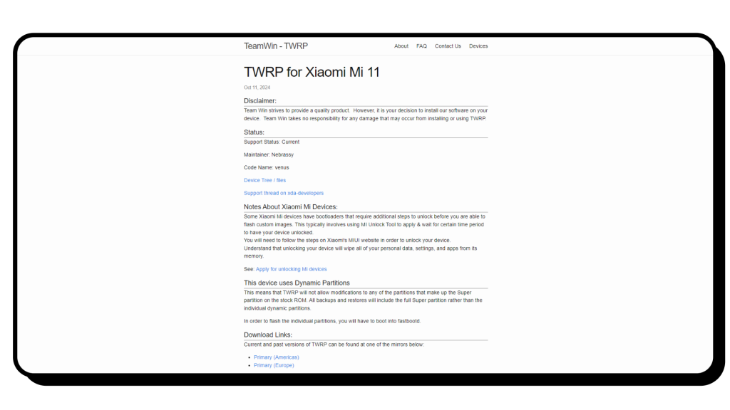 It’s important to note that TWRP may not be available for all Android devices. You can check if your device is supported by TWRP on TeamWin’s Devices page.