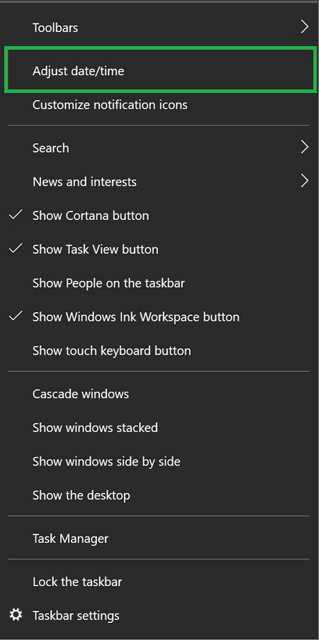 - Right-click the clock in your taskbar and select Adjust date/time.
