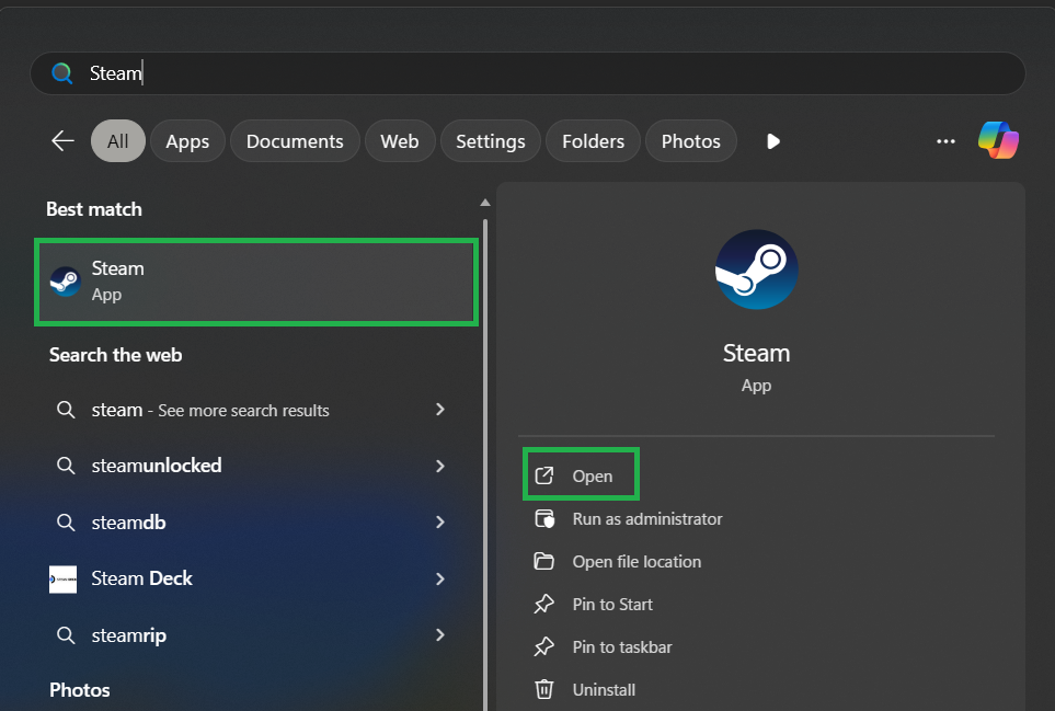 - Open Steam on your computer.