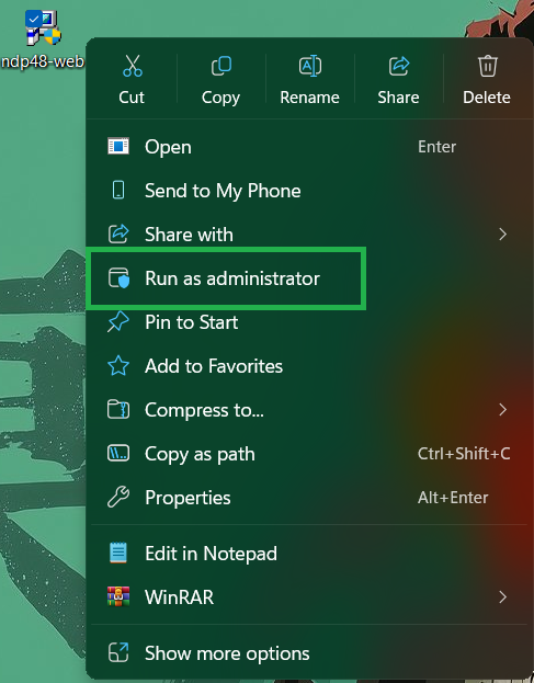 - Run the installer as an Administrator.