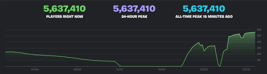 Soon after the new season began, Twitter/X user @Okami13_ shared a screenshot of the achievement from one of the numerous sites that track Fortnite’s concurrent traffic using information provided by Epic Games.