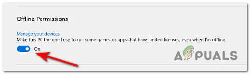 Accessing the Settings menu - Inside the Settings menu, scroll down until you find Offline Permissions, then activate it and wait until it’s done.