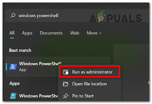 - Use the taskbar search bar to search for Windows PowerShell, then right-click it and select Run as administrator.