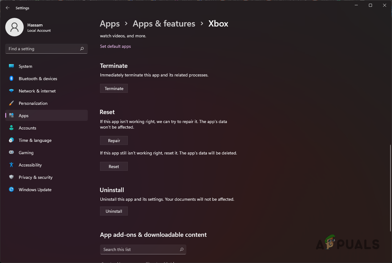Another way that you can resolve the problem in question is to reset the Xbox app that is installed on your computer. Like we have mentioned, the problem can sometimes occur when the locally stored cache is corrupted or damaged which can interfere with the games and update processes. To sort this out, follow the instructions down below:
