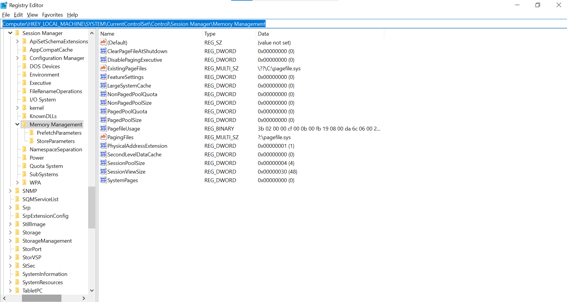 On the search bar, type the following “Computer\HKEY_LOCAL_MACHINE\SYSTEM\CurrentControlSet\Control\Session Manager\Memory Management” Accessing HKEY Memory Management
