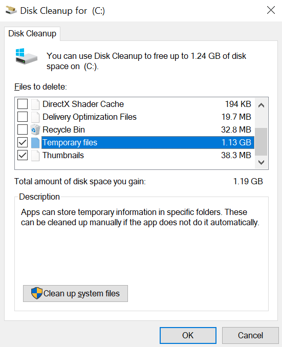 Your cache can use up a lot of RAM if it is being used for several different kinds of memory tasks. Cache memory is used to quickly display previously viewed web pages without requiring another round of data downloads. The simplest way to do so is by typing “Disk Cleanup” in the Search bar and clicking the first option. Accessing Disk Cleanup Next, you will see different types of files that are taking up your primary storage, which is usually “(C:)“. Scroll down and see check mark where it says “Temporary Files“. You will notice that these files, despite being temporary, are hogging up quite a bit of space on your hard drive/SSD. Deleting Temporary Files from Disk C: Simply select Temporary files and click “OK“. When prompted for confirmation, click “Delete Files“. Permanently Deleting Cache from Disk C: Clearing the cache can save some browsing time, but if you are running low on RAM, you can skip this step without causing a significant negative impact.