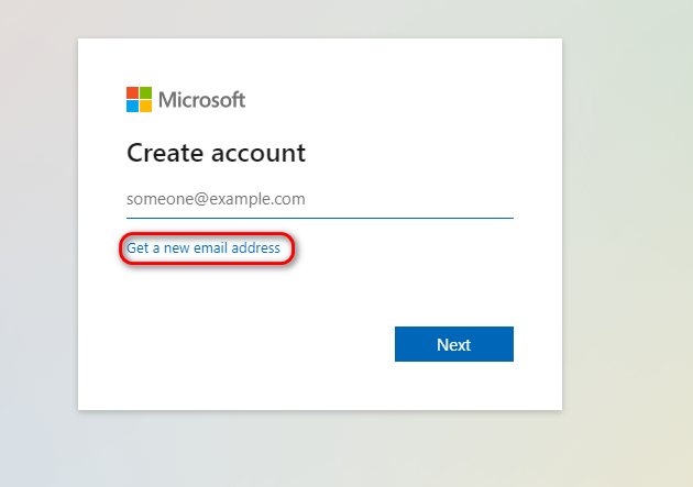 - Click on “Get a new email address” and enter your preferred email name in the text box, then click on Next.