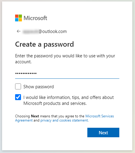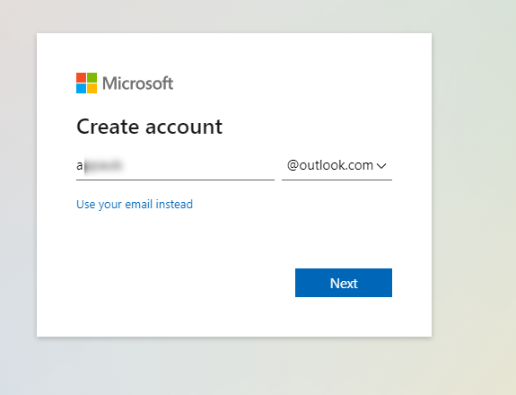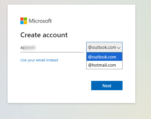 - Select a domain from the dropdown (@outlook.com or @hotmail.com).